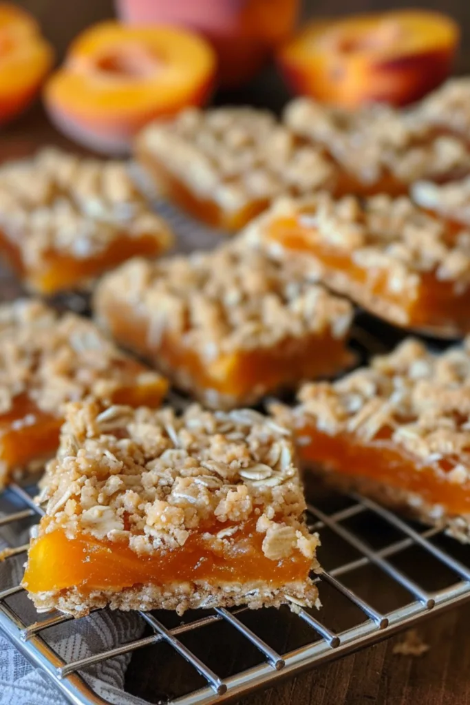 Delicious buttery oat crumble bars filled with tangy-sweet apricot preserves. Perfect for breakfast, snacks, or dessert with a delightful texture contrast.