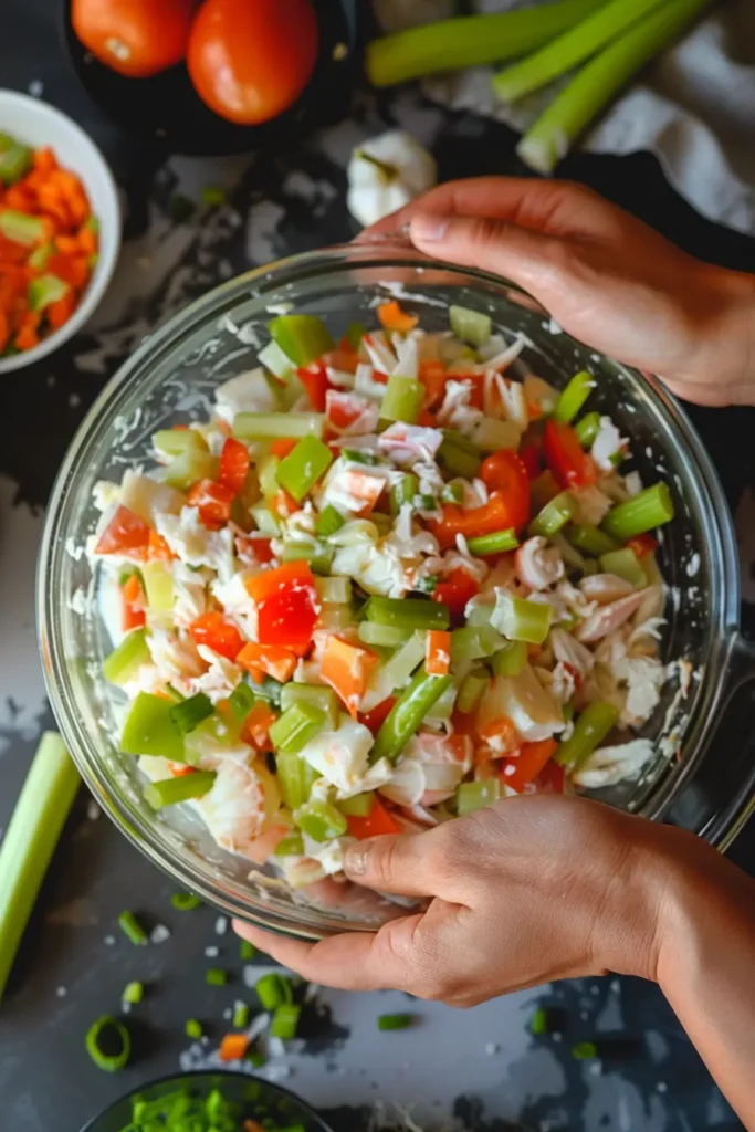 Now that you have all your ingredients ready, it’s time to bring your crab salad to life. This step-by-step guide will make the process smooth, ensuring a salad that’s creamy, flavorful, and Instagram-worthy.