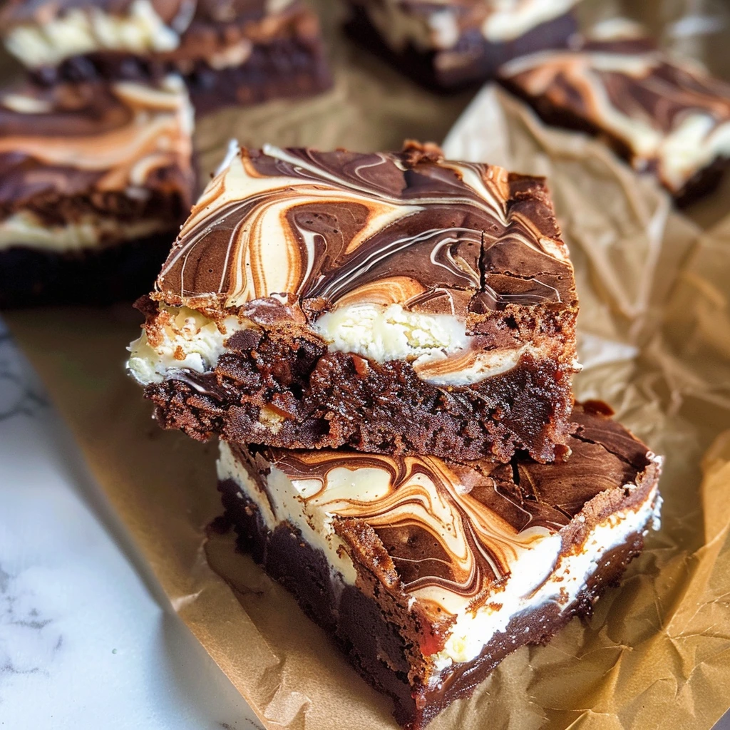 Fudgy cream cheese swirl brownies with marbled chocolate top