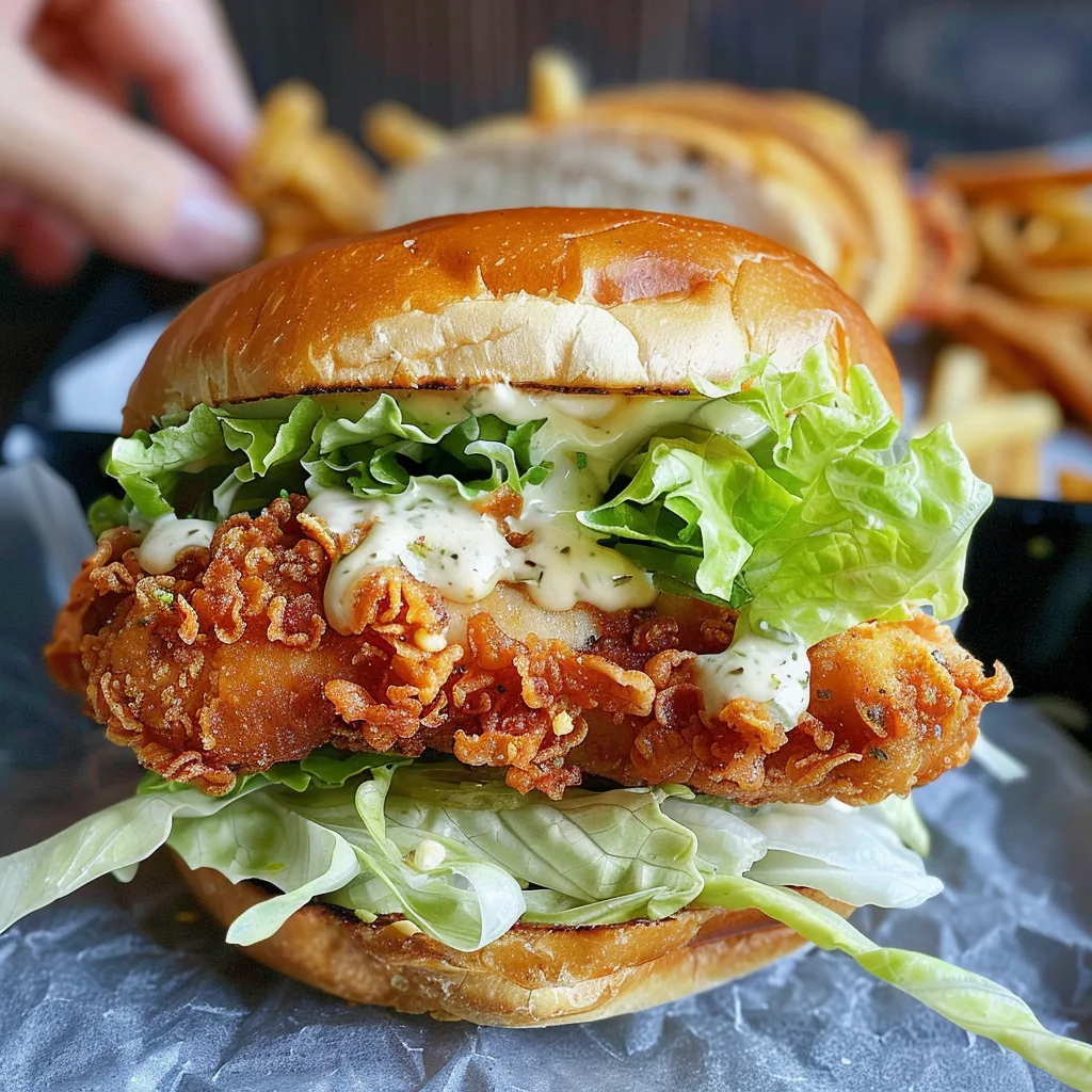 Keywords: crispy chicken sandwich, Caesar sandwich, breaded chicken, fried chicken sandwich, homemade chicken sandwich