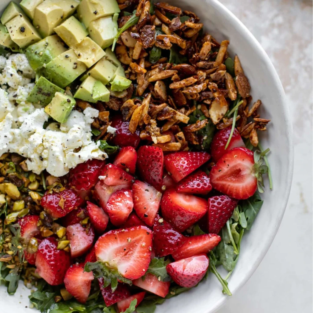 A fresh, colorful, and healthy salad featuring crisp greens, juicy strawberries, crunchy nuts, and creamy feta cheese, tossed in a light homemade vinaigrette. Perfect for any meal or picnic!