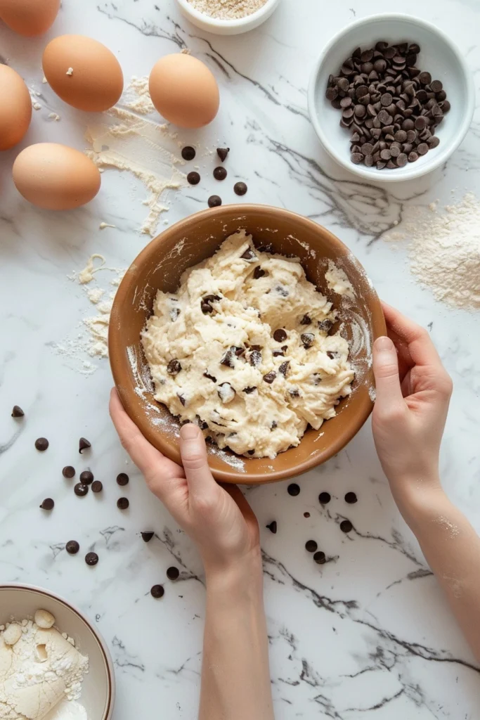 In a separate bowl, whisk together the flour, baking soda, and salt. Gradually add this mixture to the wet ingredients, mixing until just combined. Be careful not to overmix the dough.Fold in the Chocolate Chips: