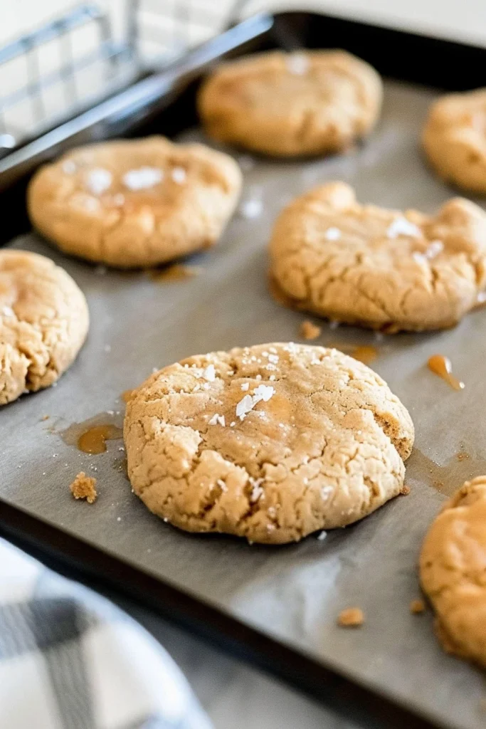Bake the cookies for 12–15 minutes or until edges are lightly golden while the center remains soft. Avoid overbaking; salted caramel cheesecake cookies are best when slightly underbaked in the middle—they’ll continue to set as they cool. Rotate the baking sheet halfway through for consistent browning.