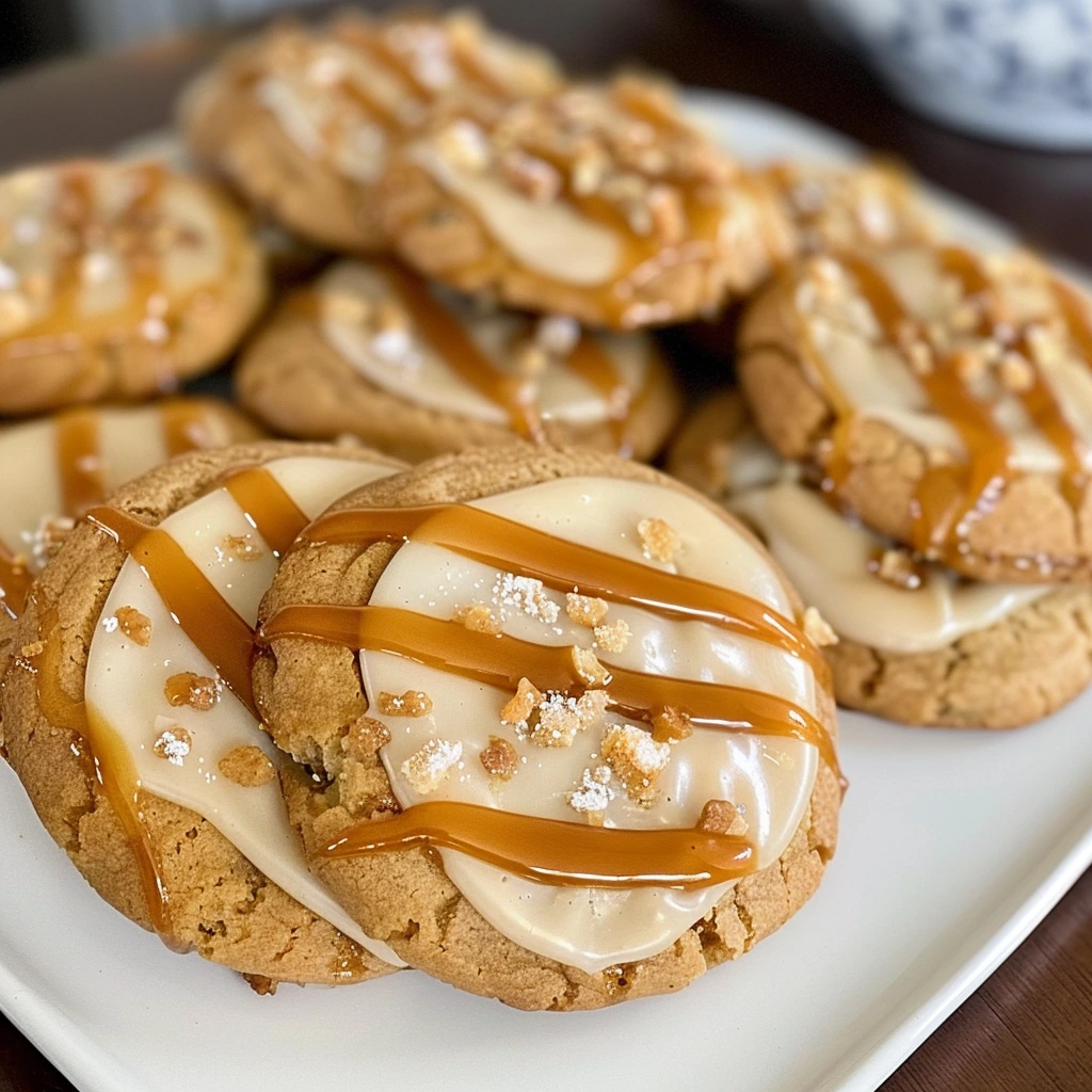 Warm cookies in the oven at 300°F (150°C) for 5–7 minutes to bring back their gooey texture. Microwaving works too, but check frequently to avoid over-softening. A quick caramel drizzle can refresh the flavor.