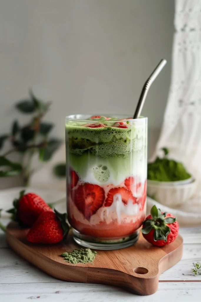 Strawberries are often a go-to fruit for adding a burst of natural sweetness. In a Strawberry Matcha Latte, they bring a fresh, fruity taste that balances out the green tea’s more herbal notes. The combination of strawberries and matcha isn’t just delicious—it’s also visually striking. The rich green color of matcha contrasts beautifully with the bright red of the strawberries, making this latte not only a treat for your taste buds but also a feast for your eyes.